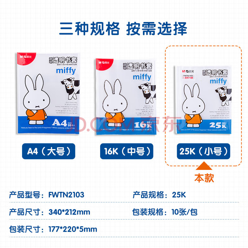 商品相册:晨光(M&G)文具25K/10张小号米菲环保防滑透明书套包书皮保护套小学生课本书皮CPP书壳书膜第