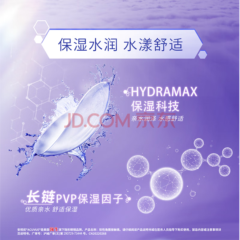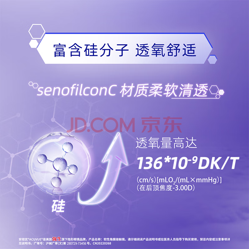 商品相册:强生隐形眼镜安视优VITA硅水凝胶高透氧保湿近视月抛悦氧6片装500度第