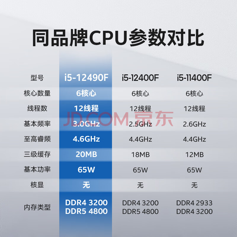 商品相册:英特尔(Intel)酷睿12代 i5处理器12490F 6核12线程 单核睿频至高可达4.6Ghz 20M三级缓存 台式机CPU第