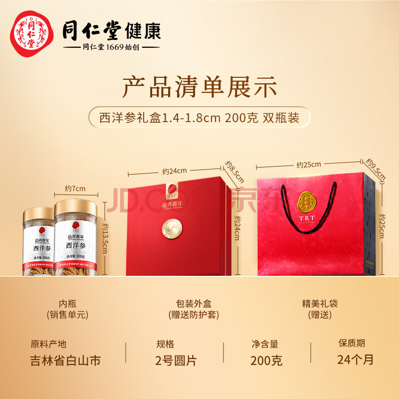 商品相册:同仁堂品牌 北京同仁堂西洋参片礼盒200g花旗参正宗礼品送父母长辈补品第