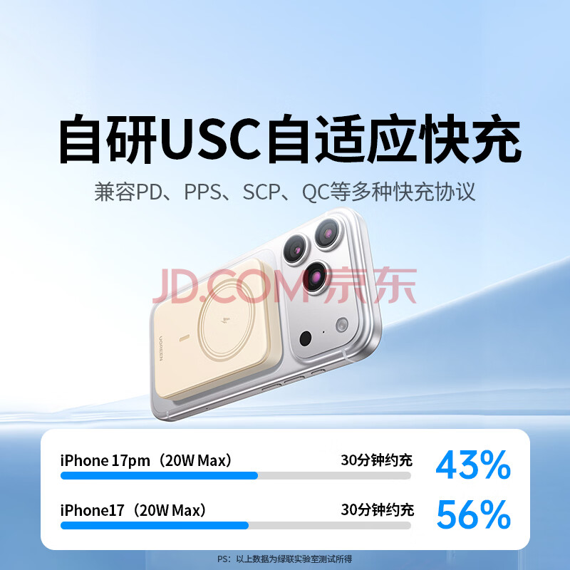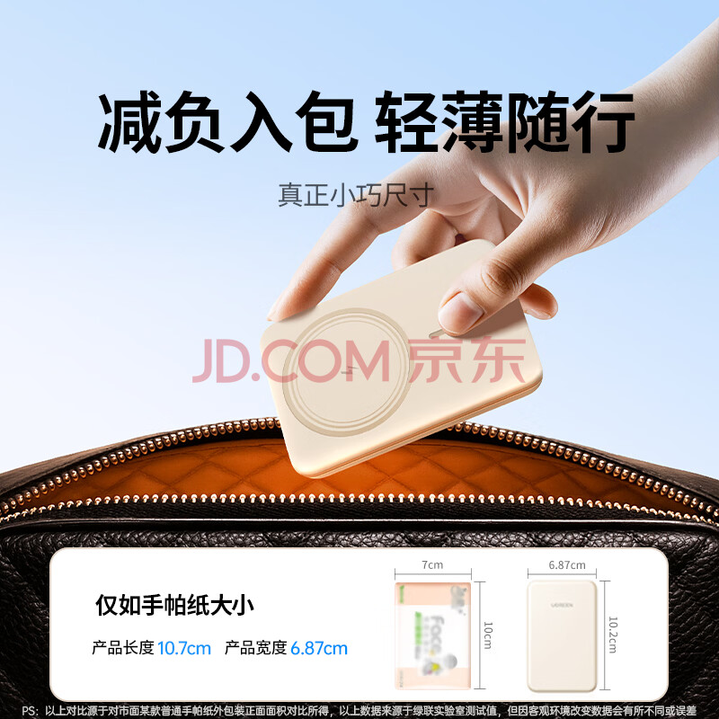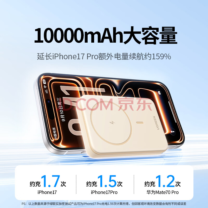 商品相册:绿联【3C认证可上飞机】磁吸充电宝10000毫安20W快充薄兼容Magsafe无线移动电源适用苹果17华为小米第