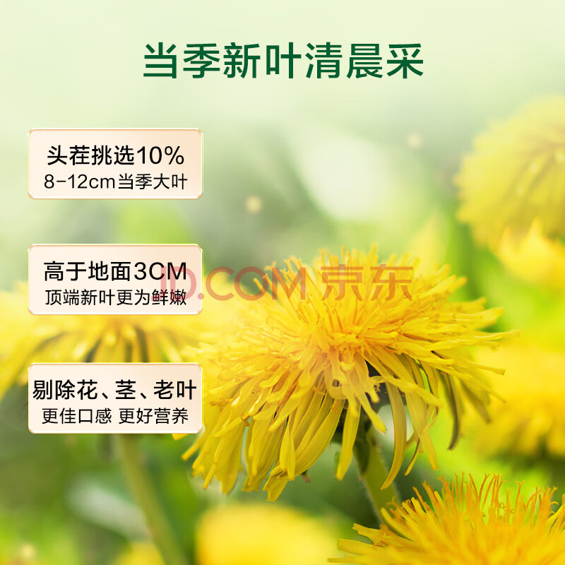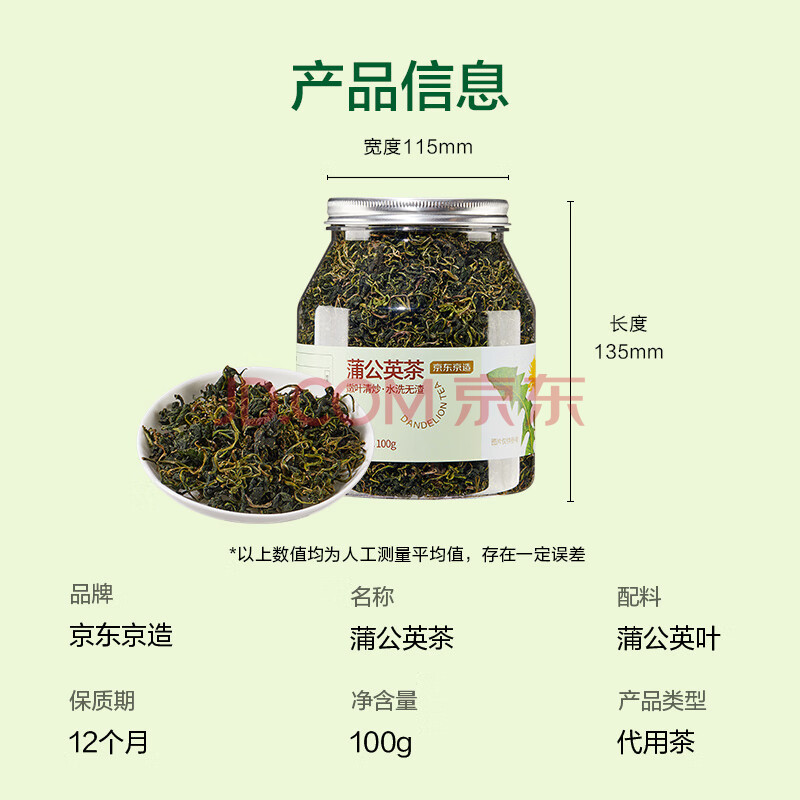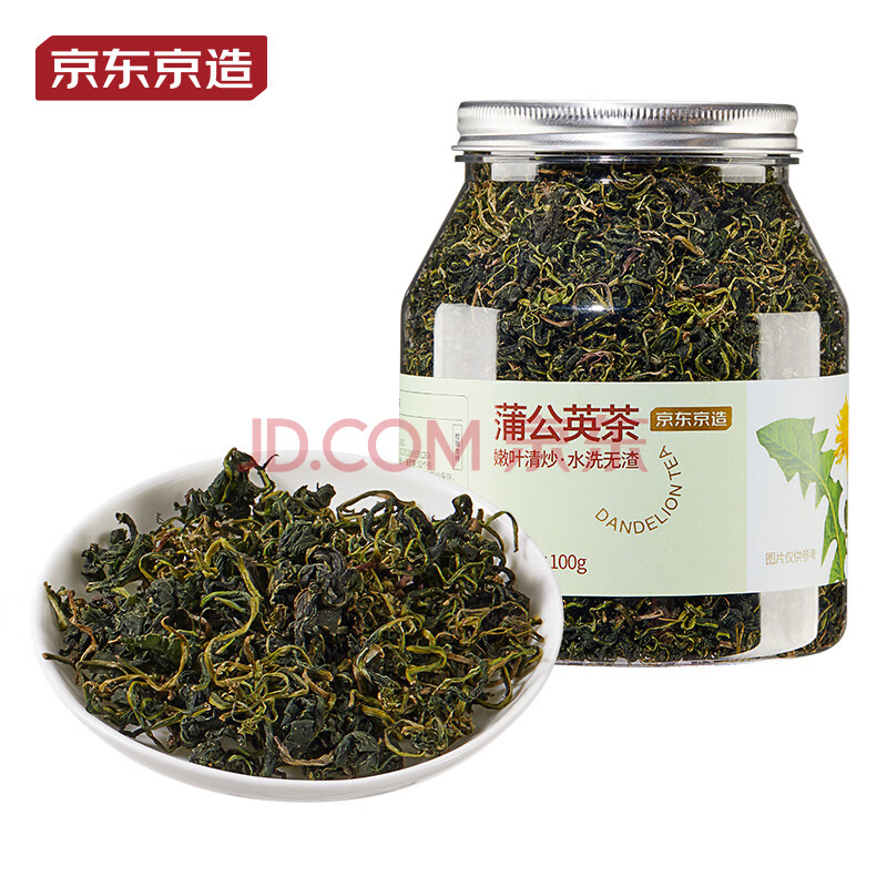 商品相册:京东京造鲜来多 长白山蒲公英茶 蒲公英叶根养生茶100g【京东自营】可定制第