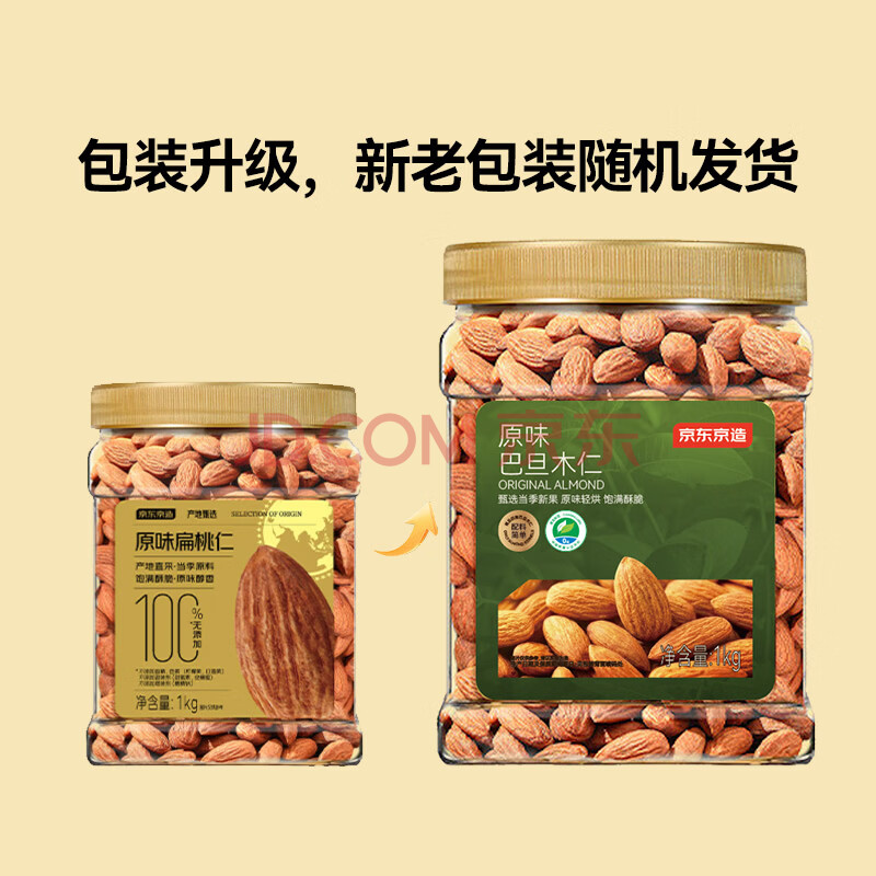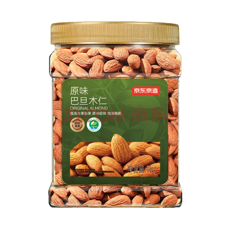 商品相册:京东京造鲜来多原味巴旦木仁1kg每日坚果干果扁桃仁杏仁零食炒货京东自营第1张/共8