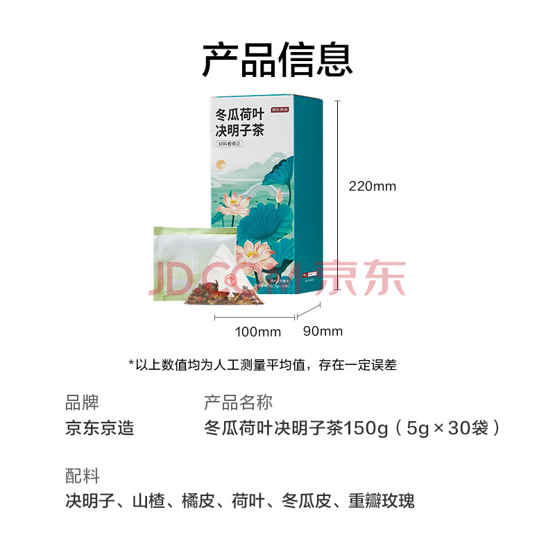 商品相册:京东京造鲜来多冬瓜荷叶决明子茶150g(5g*30)通畅可定制团购第