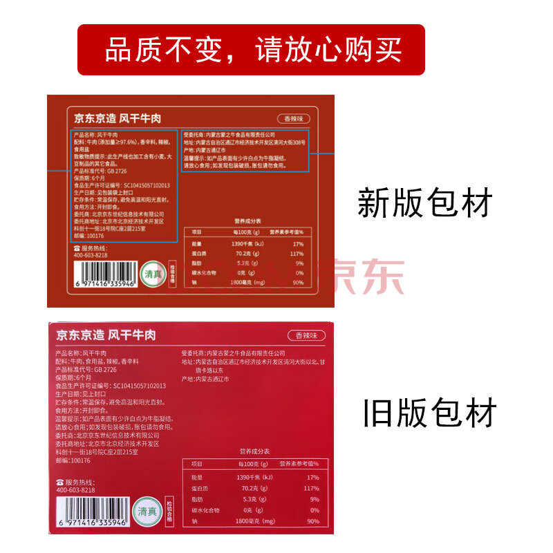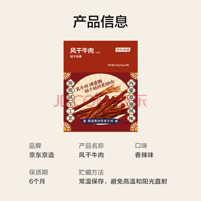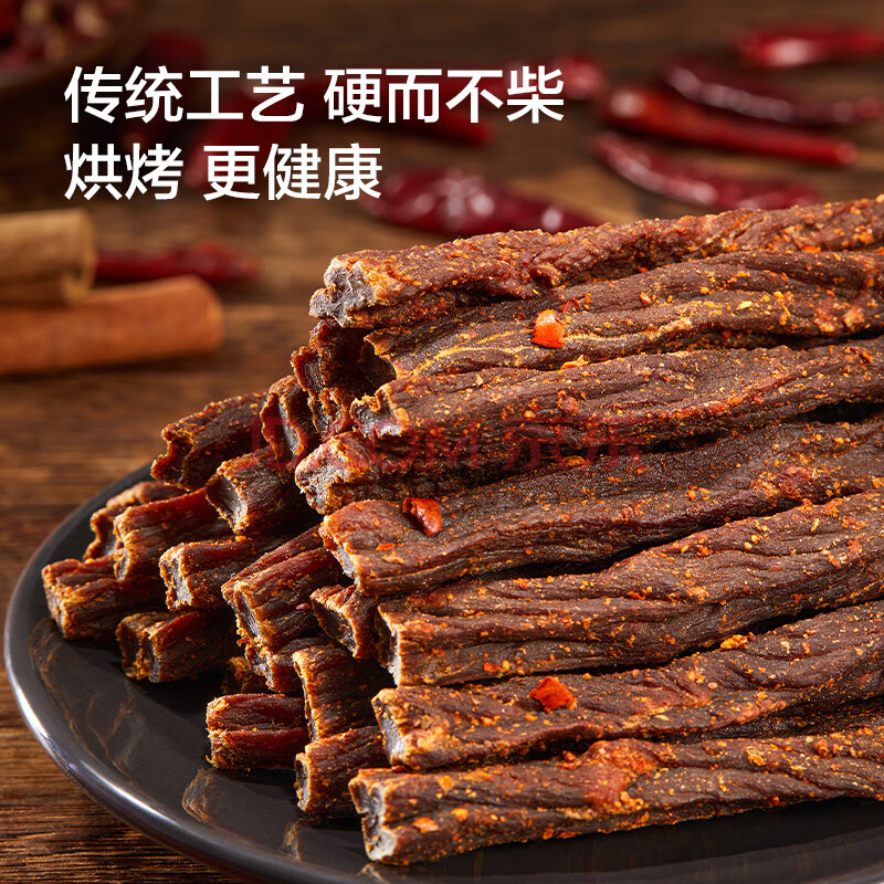 商品相册:京东京造鲜来多超干牛肉香辣味200g风干牛肉干内蒙古手撕牛肉干即食零食第