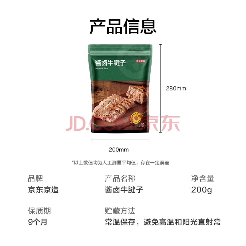 商品相册:京东京造酱牛腱子200g熟食腊味酱牛肉菜肴牛肉干肉脯休闲零食即食健身代餐第