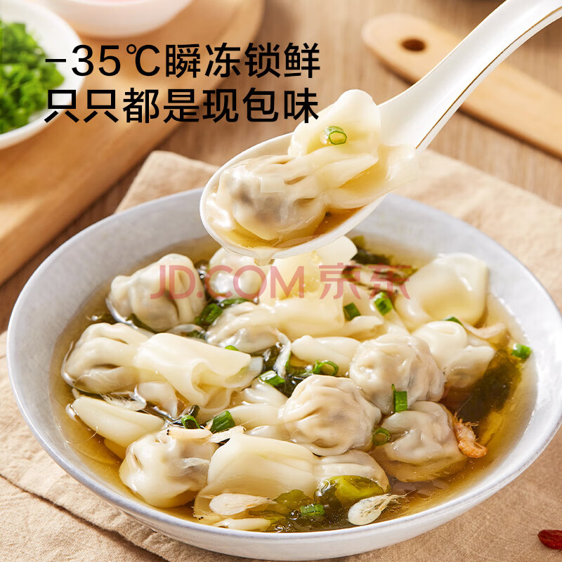 商品相册:京东京造 鲜美猪肉小馄饨768g 75只送紫菜虾皮汤料包儿童云吞早餐夜宵速食第