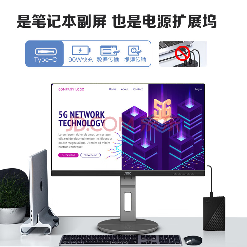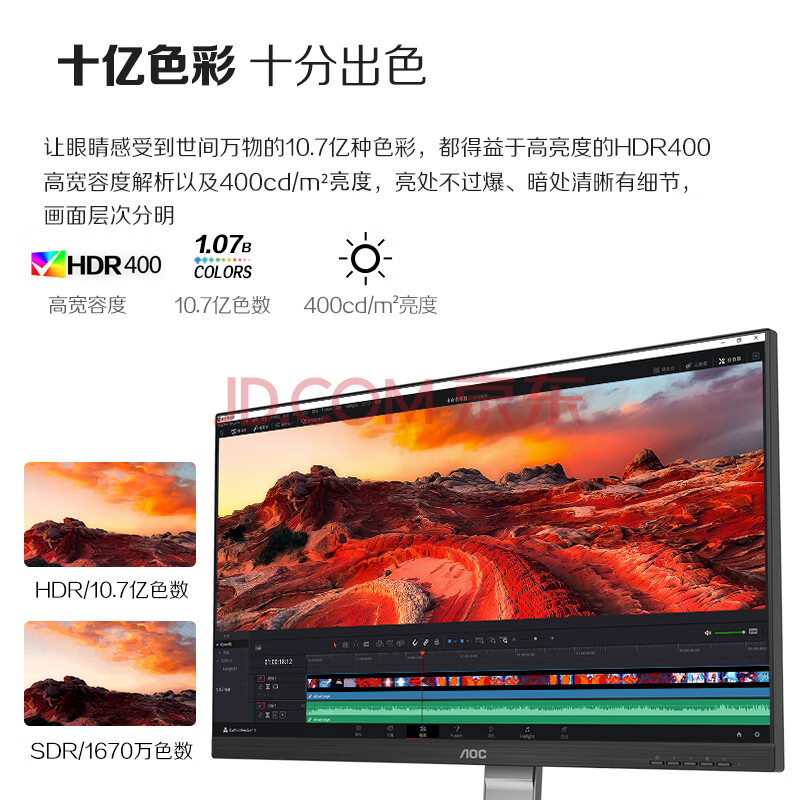 商品相册:AOC 27英寸 4K IPS广色域 HDR400 Type-C90W 旋转升降 内置音箱 macmini节能办公电脑显示器 U27N3R第