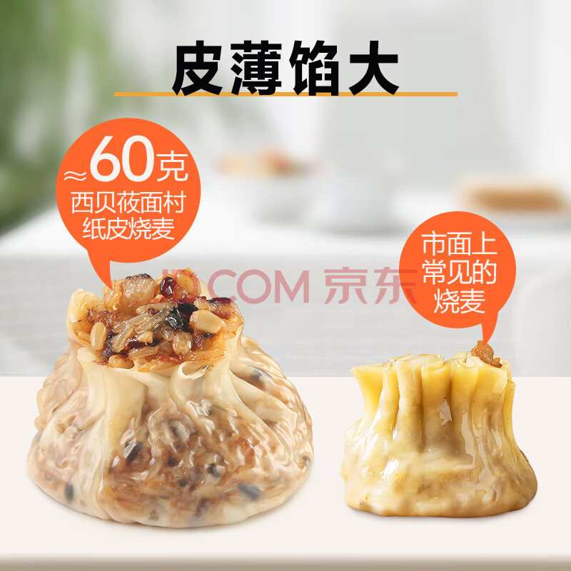 商品相册:西贝莜面村杂粮纸皮烧麦360g 6个 面点半成品 加热即食点心烧卖 开学早餐第