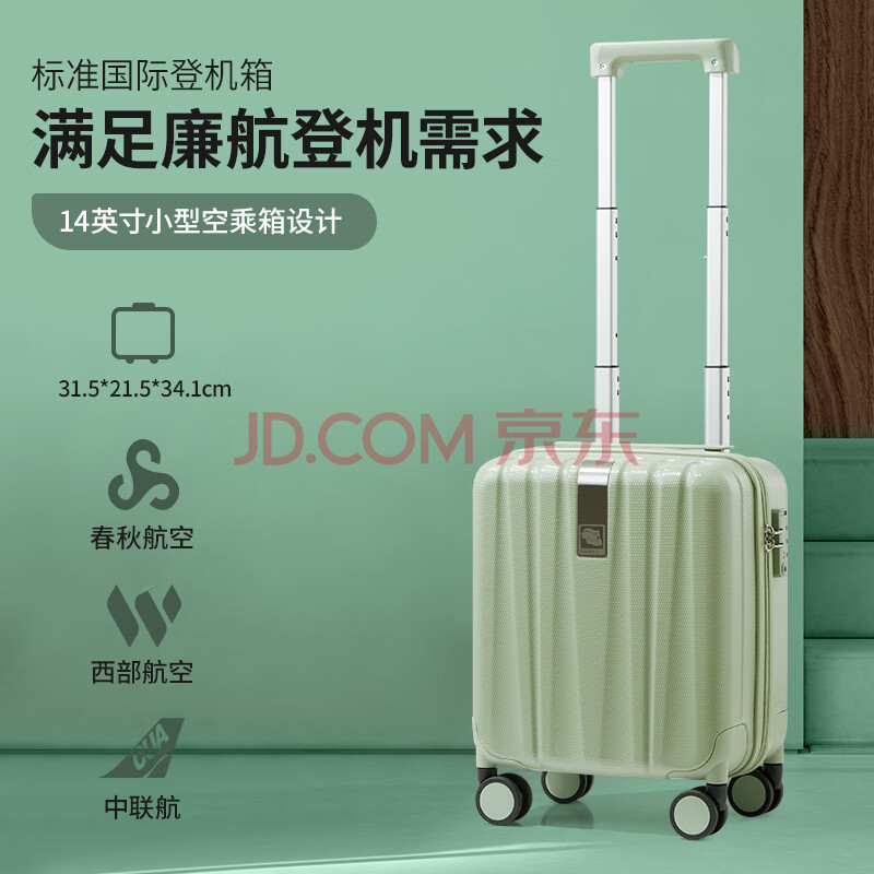 商品相册:汉客行李箱男拉杆箱女登机旅行箱14英寸青竹绿密码箱镇店之宝再次升级第