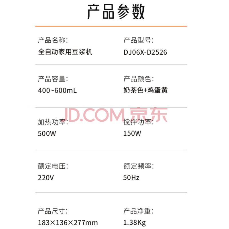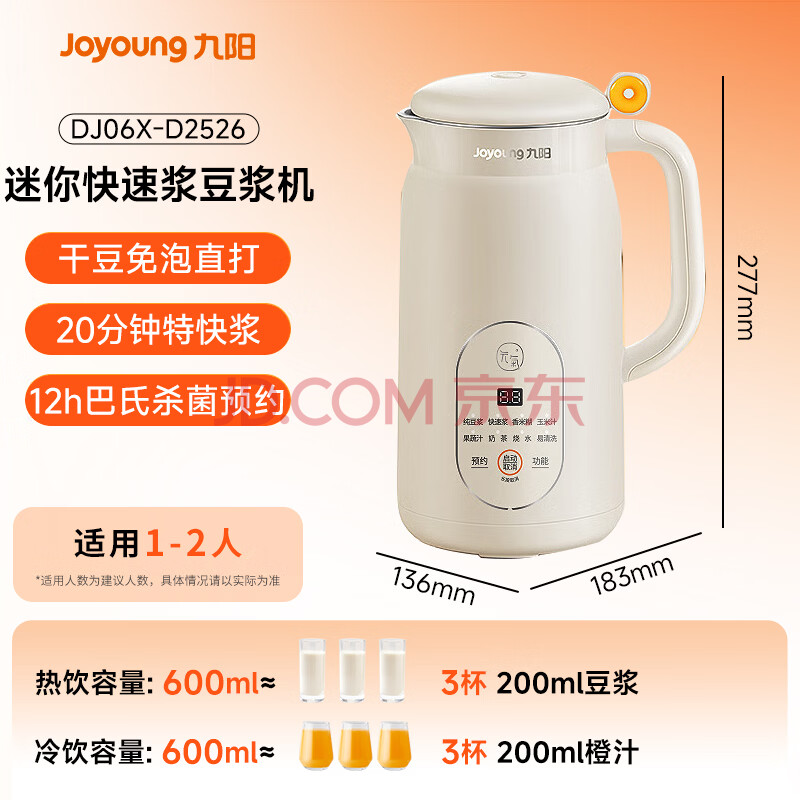 商品相册:九阳(Joyoung)破壁机0.6L轻巧容量1-2人用豆浆机 细腻免滤预约时间易清洗小型家用多功能料理机D2526第1张/共7