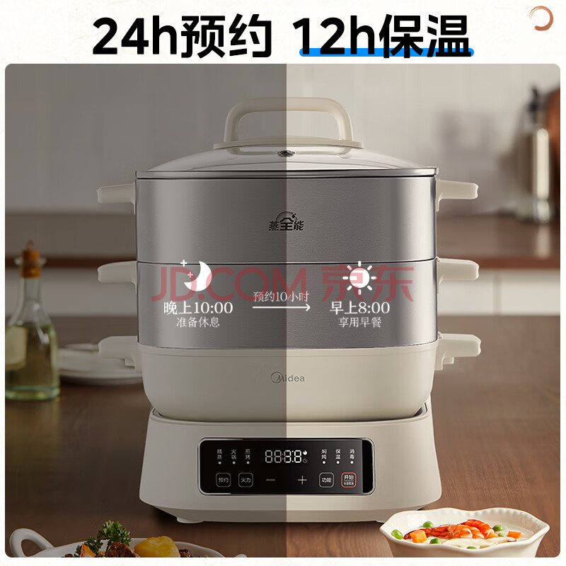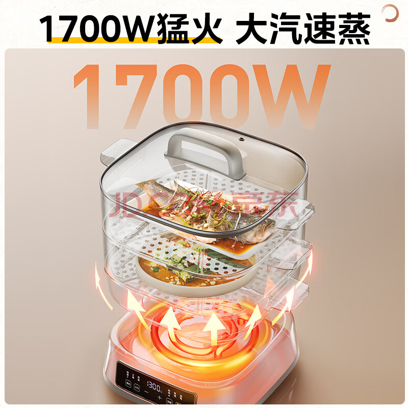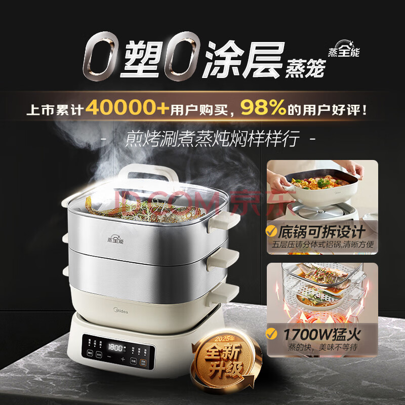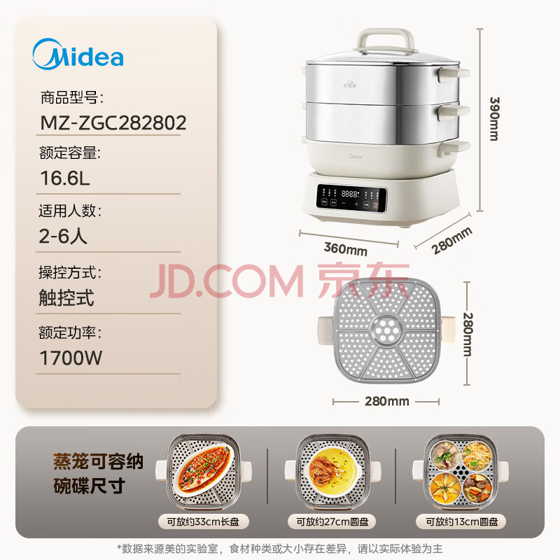商品相册:美的(Midea)电蒸锅电煮锅电火锅多功能家用电炒锅蒸包子锅蒸全能三层16.6L大容量智能多用途锅ZGC282802第