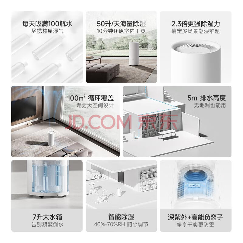 商品相册:米家小米智能除湿机50L上排水家用客厅别墅地下室抽湿机除湿器干衣机干燥机DM-CS50第