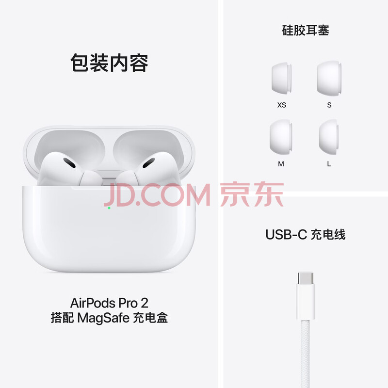 商品相册:Apple/苹果 AirPods Pro (第二代) 搭配MagSafe充电盒 (USB-C) 苹果耳机 蓝牙耳机 适用iPhone/iPad/Mac第