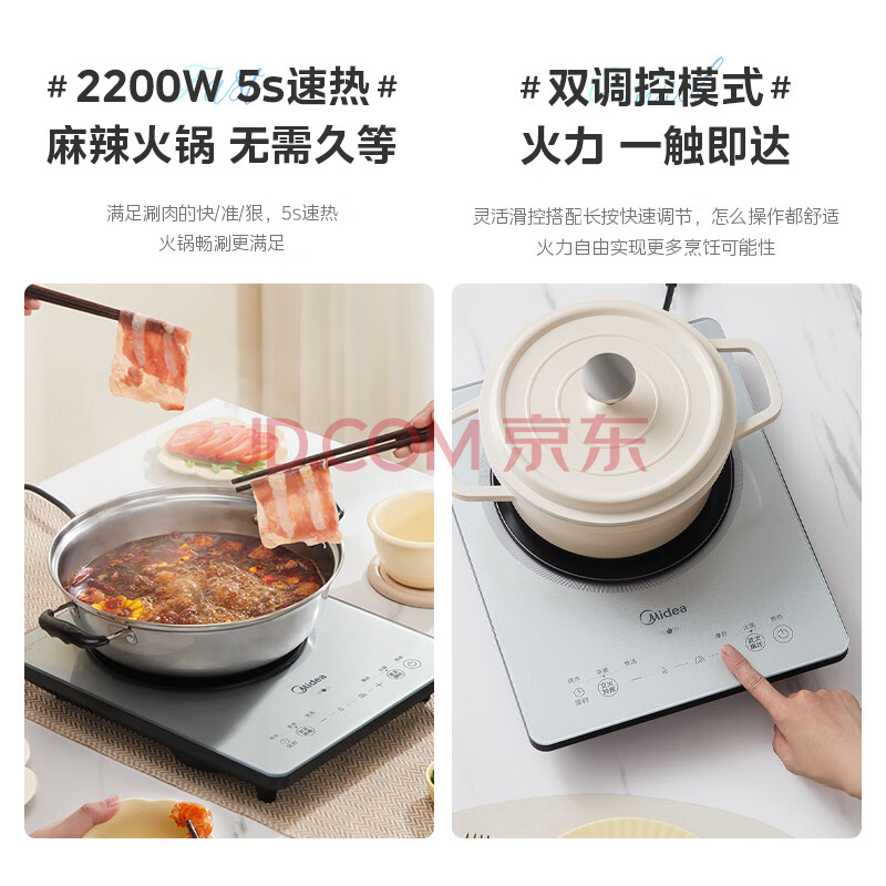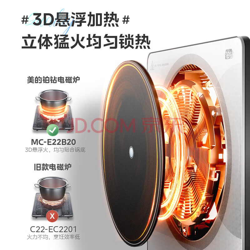 商品相册:美的(Midea)铂钻家用电磁炉 电陶炉 新型电磁灶2200W火锅炉大功率炒菜烧水一体面板超薄 MC-E22B20第1张/共9