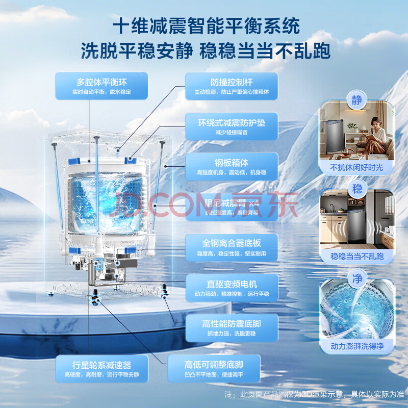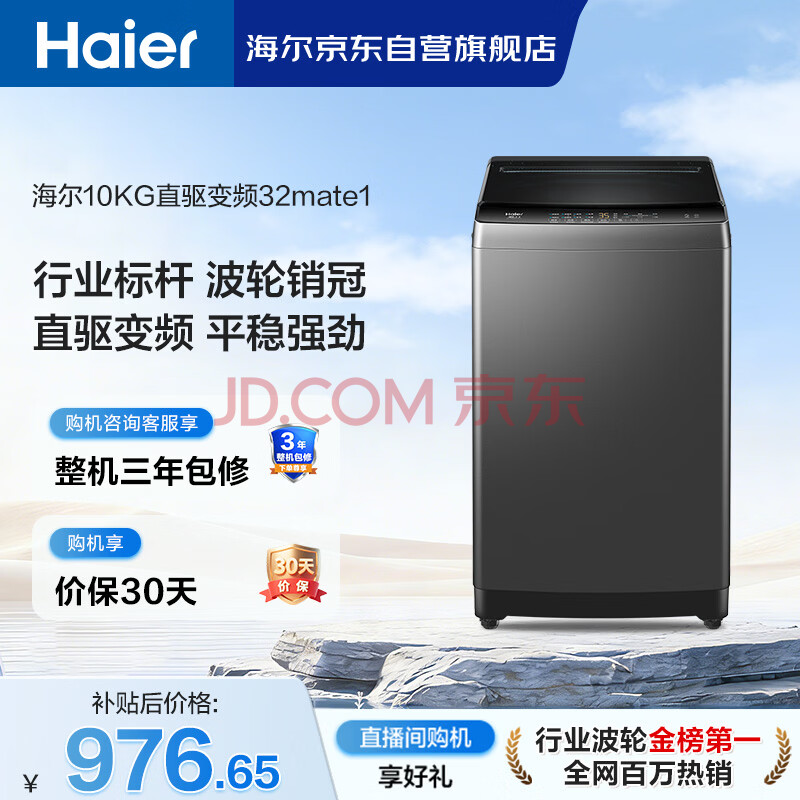商品相册:海尔(Haier)全自动波轮洗衣机10KG大容量 直驱变频 一级能效 家用宿舍 家电京东自营 EB100B32Mate1第