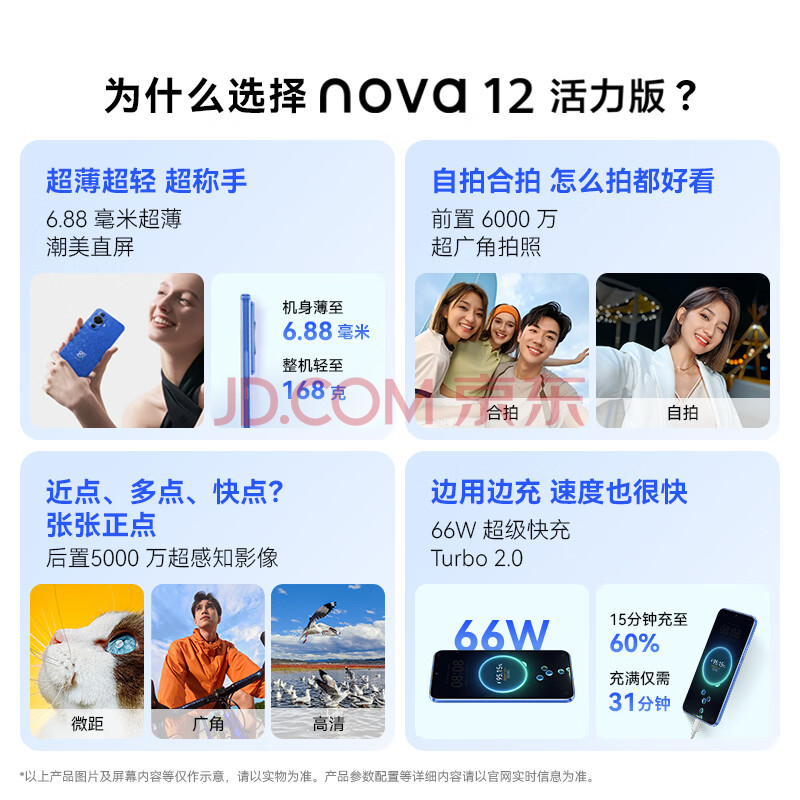 商品相册:华为nova 12活力版 6.88mm超薄潮美直屏前置6000万超广角拍照 256GB 曜金黑 鸿蒙智能手机第1张/共8