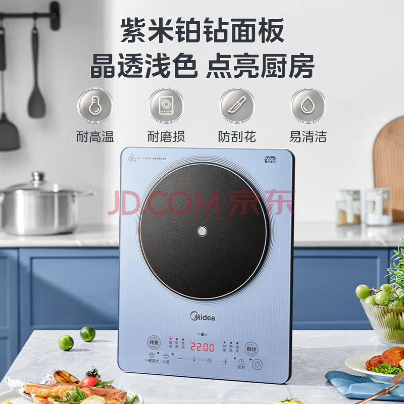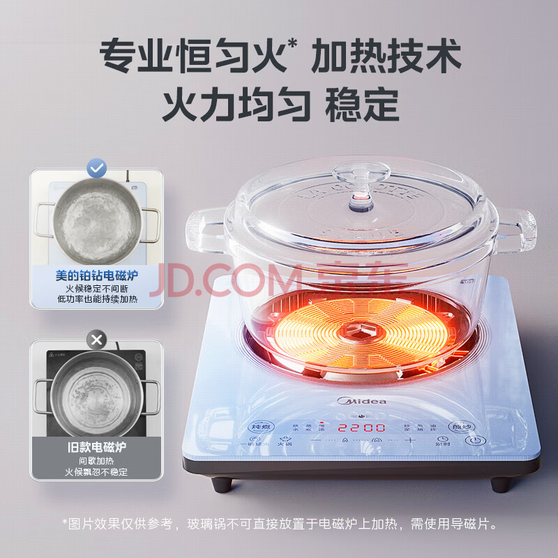 商品相册:美的(Midea)铂钻家用电磁炉电陶炉大功率大面板炒菜多功能新型火锅炉一套带锅配锅MC-E22B25第
