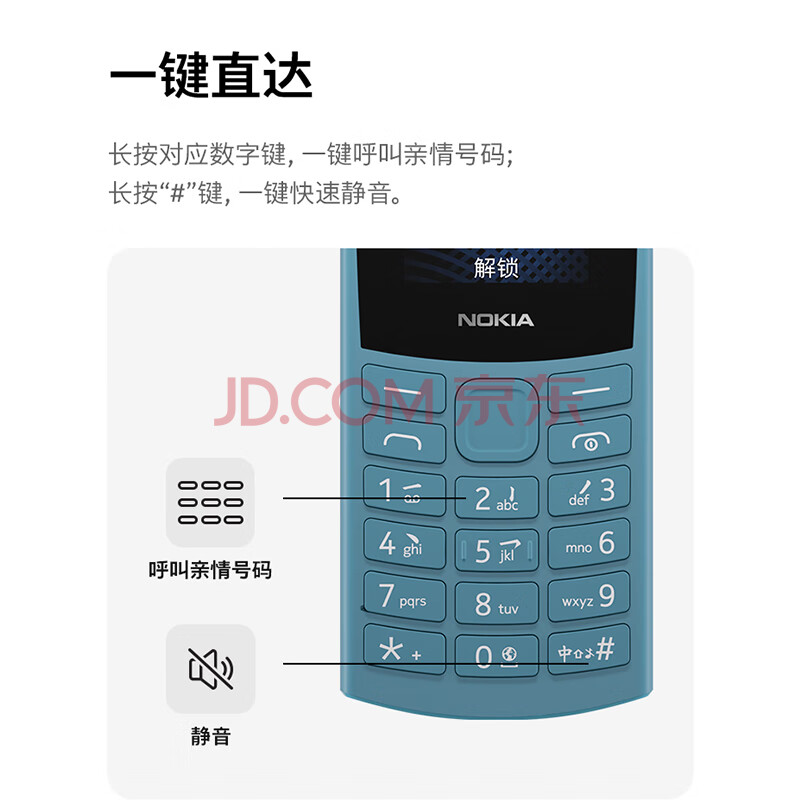 商品相册:NOKIA新105 4G 全网通移动联通电信 老人老年按键直板学生儿童备用戒网手机 双卡双待 蓝色第