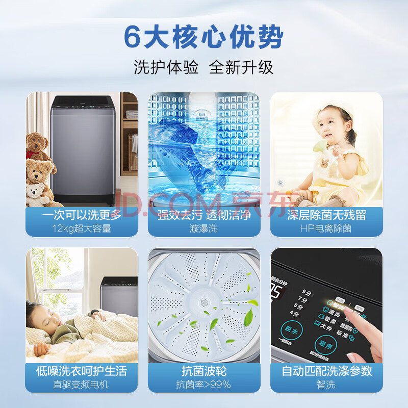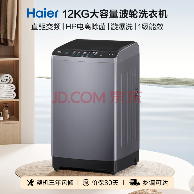 商品相册:海尔全自动波轮洗衣机 12KG大容量 直驱变频一级能效 家电京东自营 EB120B35Mate3第