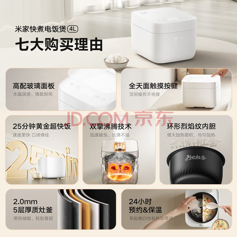 商品相册:米家小米电饭煲家用3-4个人 多功能电饭锅煮饭锅煮粥锅 25分钟快煮 不粘内胆智能防溢 大容量4升第