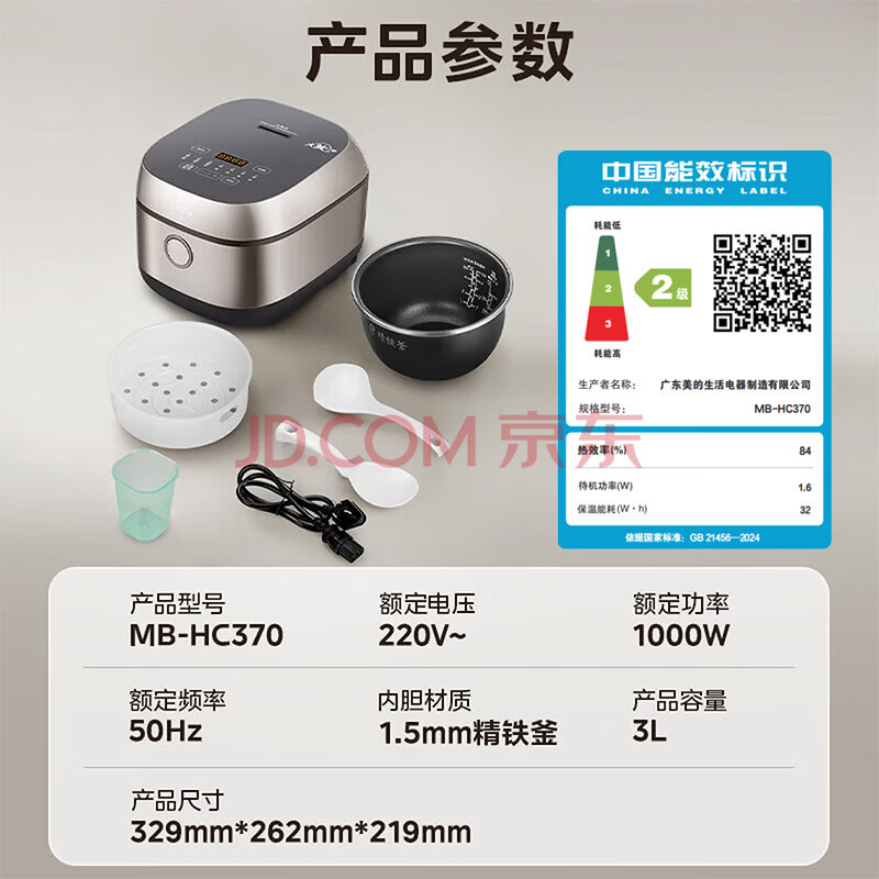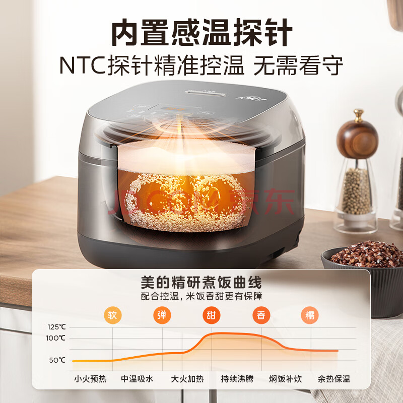 商品相册:美的(Midea)电饭煲3L IH加热 加厚精铁釜内胆杂粮饭2-3人多功能家用智能预约电饭锅MB-HC370第