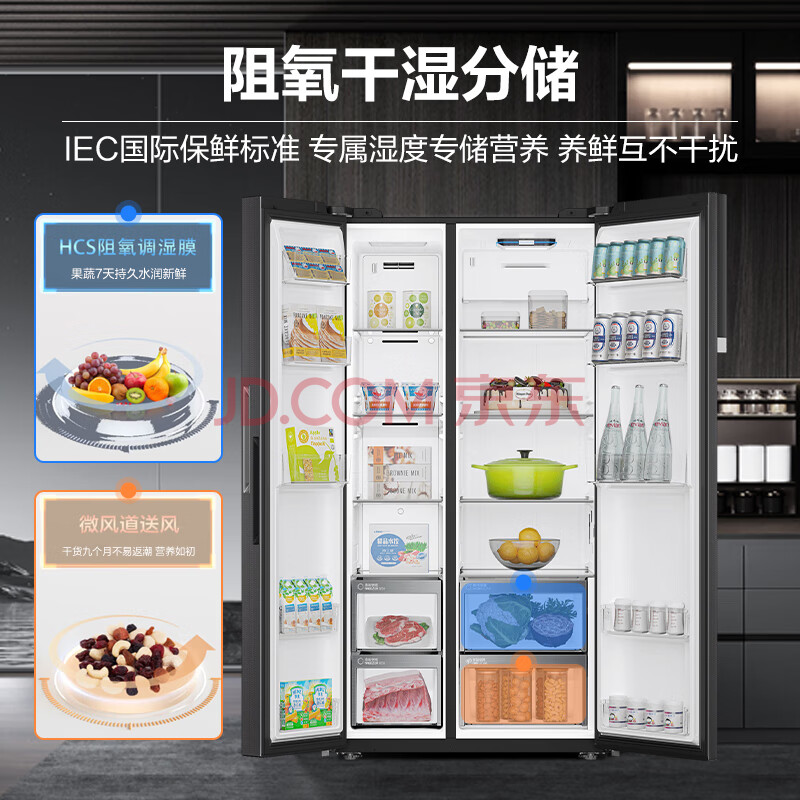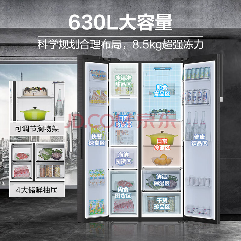 商品相册:海尔(Haier)盛宴630L对开门冰箱干湿分储一级能效风冷变频超大容量灰色BCD-630WGHSS95SMU1第