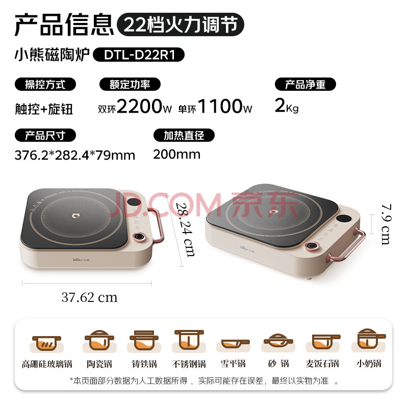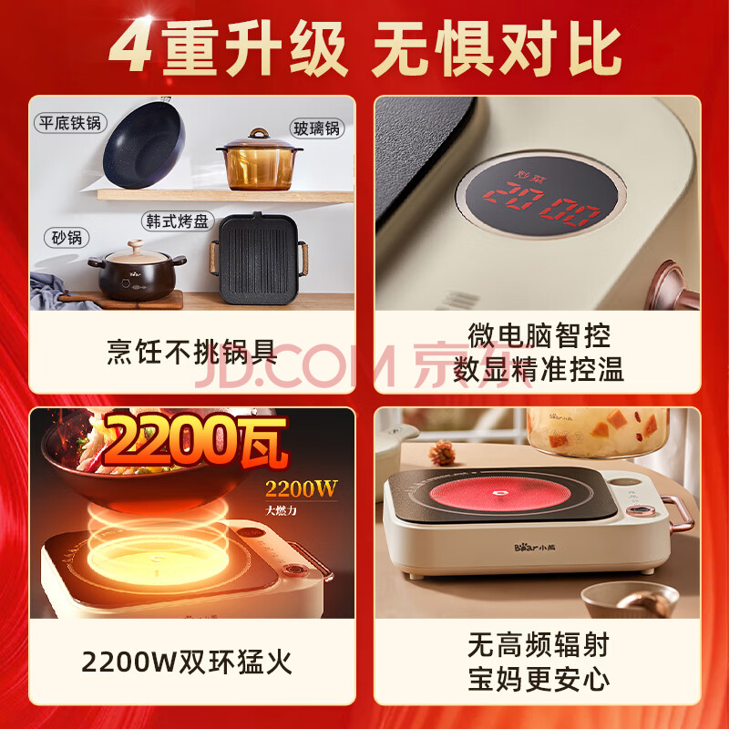 商品相册:小熊(Bear)电磁炉 电陶炉 家用煮茶火锅2200W大火力智能触控22档火力双环控火可定时无辐射电磁灶 DTL-D22A1第