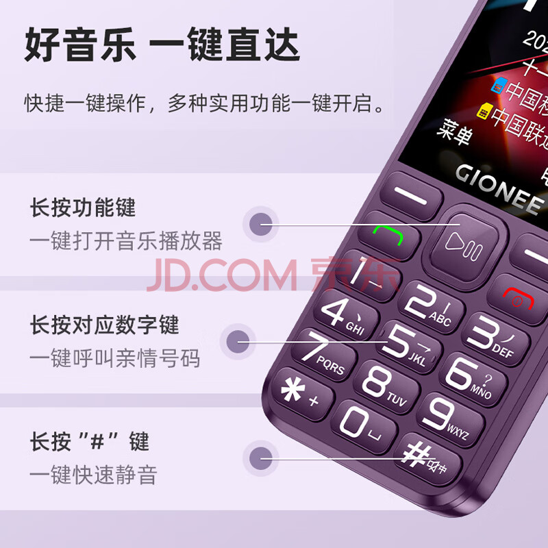 商品相册:金立(Gionee)老年机4G全网通老年人手机全新款超长待机 大字体大声音大按键学生老人专用备用功能机G510 紫色第