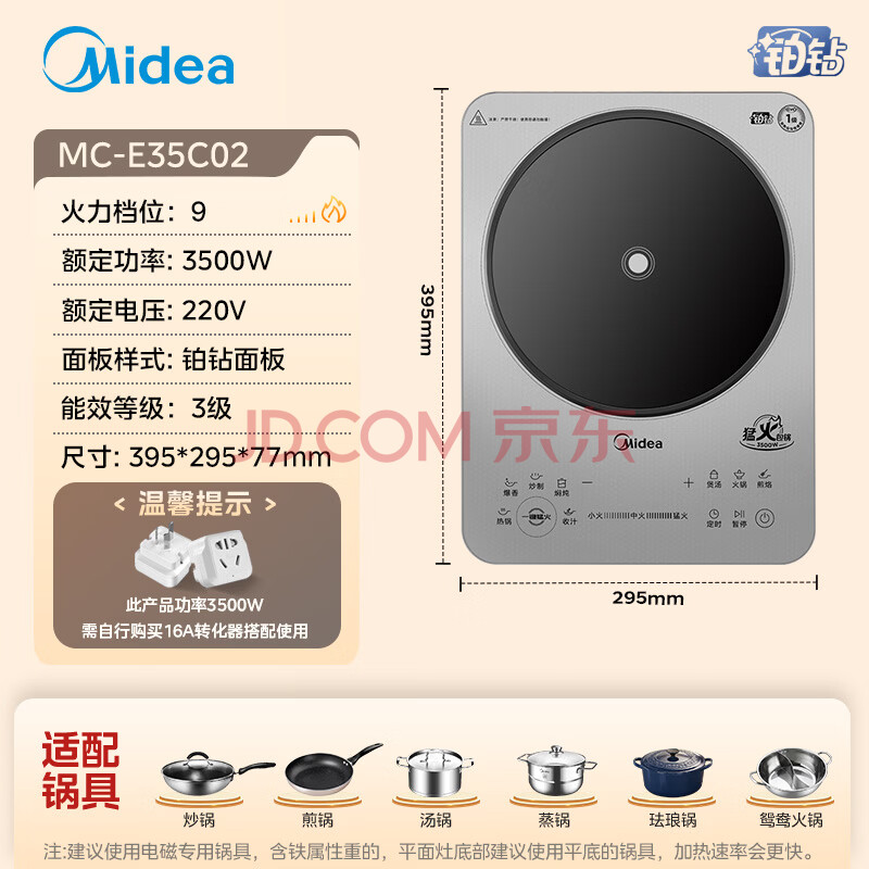 商品相册:美的(Midea)铂钻家用电磁炉3500W大功率电陶炉电池炉多功能电磁灶电池炉爆炒大面板耐磨易洁煮小米粥MC-E35C02第