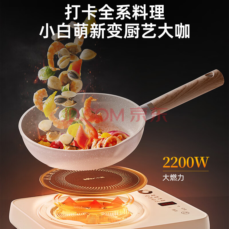 商品相册:小熊(Bear)家用电磁炉电池炉2200W大功率猛火爆炒炒菜智能触控防水面板8档火力纤薄电磁灶火锅炉DCL-B22H5第