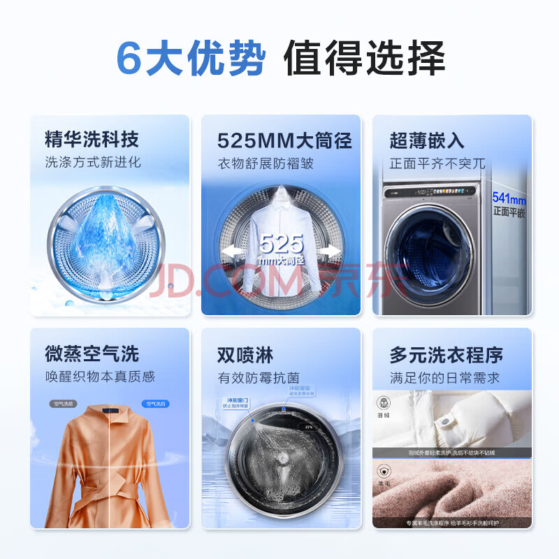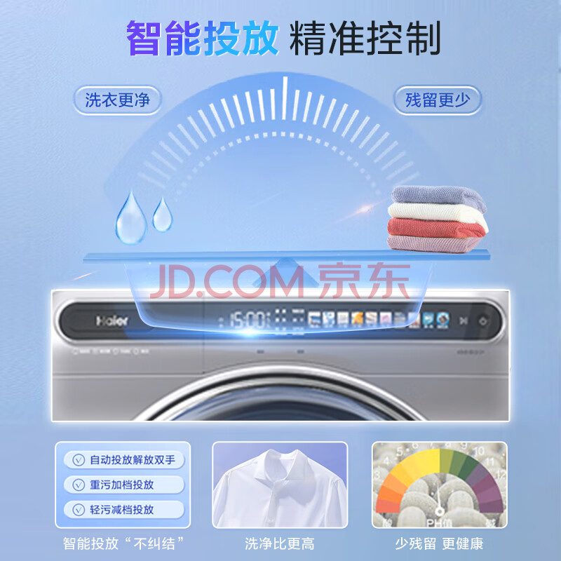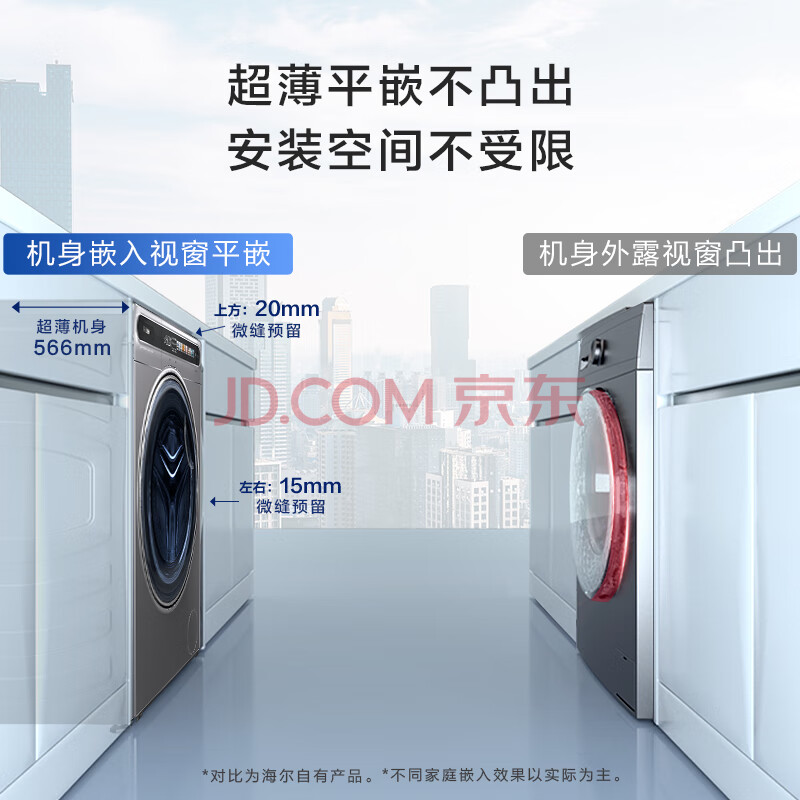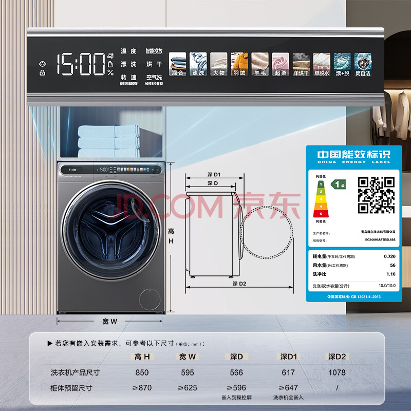 商品相册:海尔(Haier)全自动滚筒洗烘一体 洗衣机带烘干一体 10KG 超薄平嵌 家电京东自营 EG100HMATESL59S第