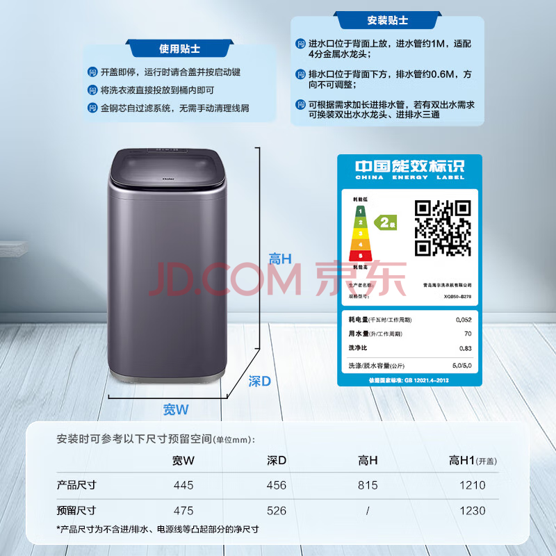 商品相册:海尔(Haier)全自动直驱迷你波轮小型 5KG 内衣洗衣机 洗内裤袜子 婴儿 家电焕新补贴京东自营 XQB50-B278第
