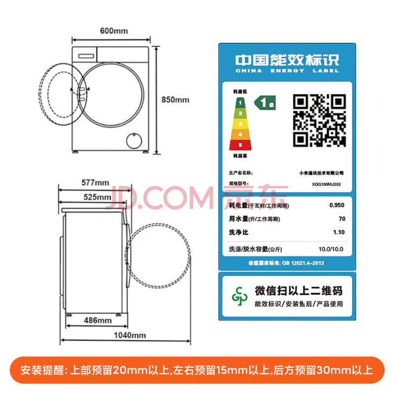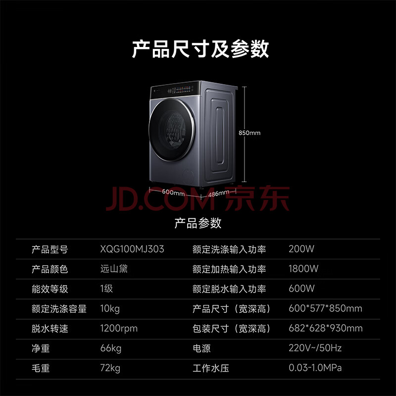商品相册:米家滚筒洗衣机全自动10公斤智投洗Pro超薄家用羊毛洗一级能效 XQG100MJ303第