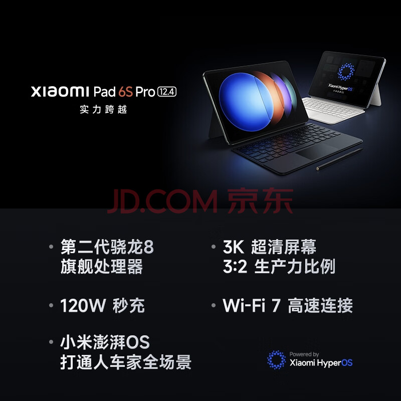 商品相册:小米(MI) 平板6S Pro 12.4英寸 小米SU7适配 平板电脑 骁龙8Gen2 3K超清屏 120W快充 12+256G云峰蓝第