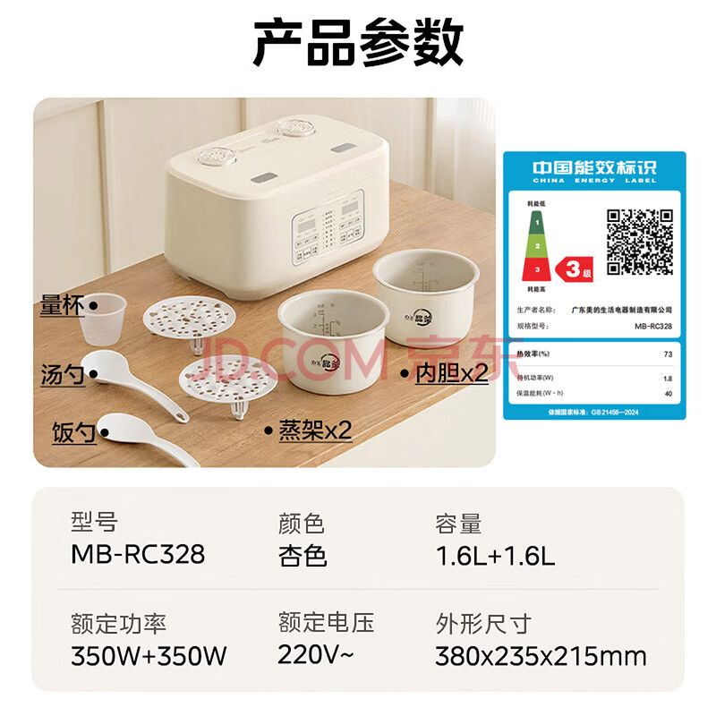 商品相册:美的(Midea)3.2L双胆双控电饭煲白玉晶釜内胆2-3人香弹饭煲仔饭多功能家用智能电饭锅MB-RC328第