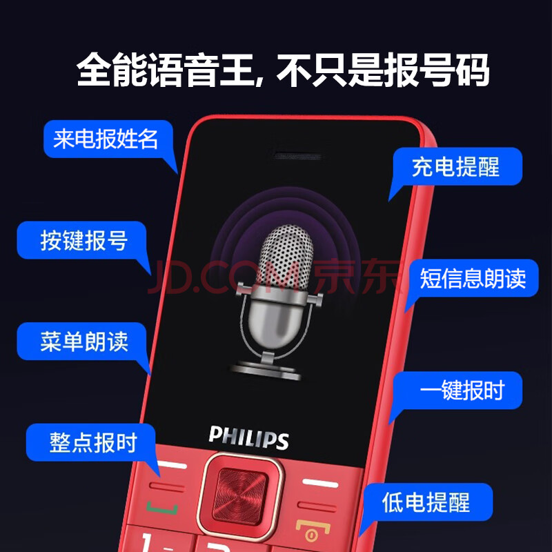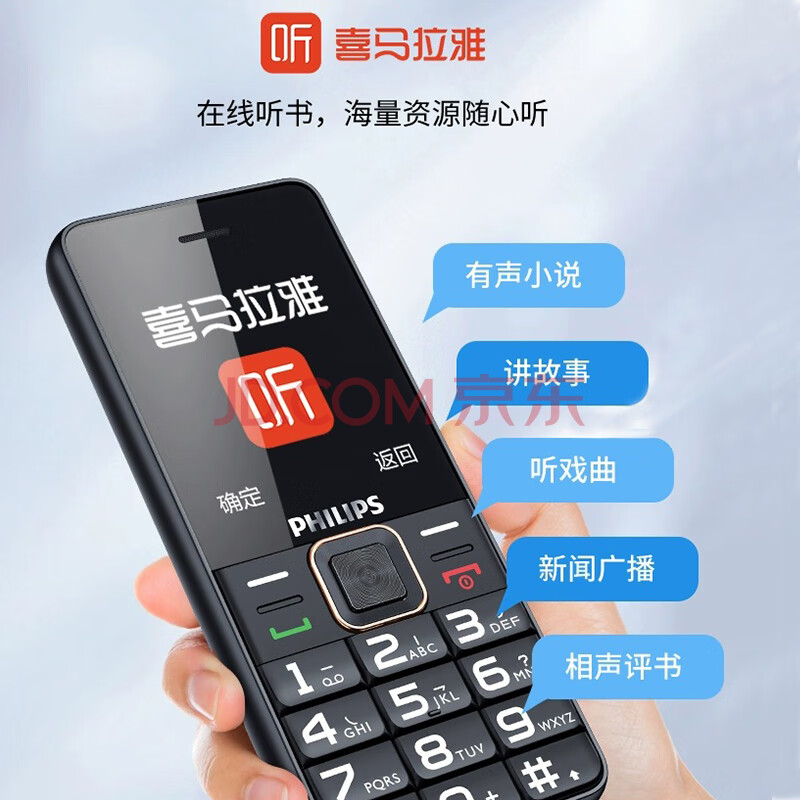 商品相册:飞利浦(PHILIPS)E6105 星空黑 全网通4G移动联通电信广电 老年人手机智能 直板手机按键 学生备用功能机第