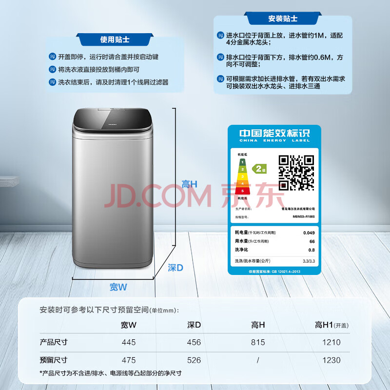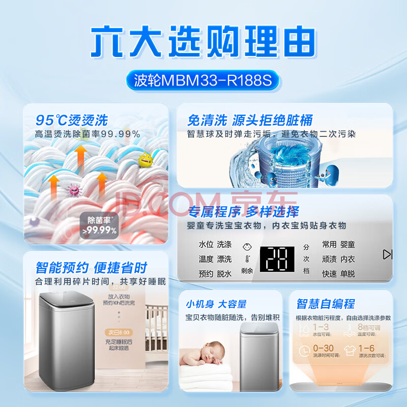 商品相册:海尔(Haier)婴儿洗衣机小型波轮全自动3.3KG 儿童洗衣机 内衣裤洗衣机 95℃烫烫洗 家电焕新补贴MBM33-R188S第