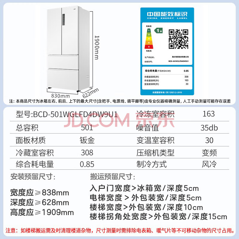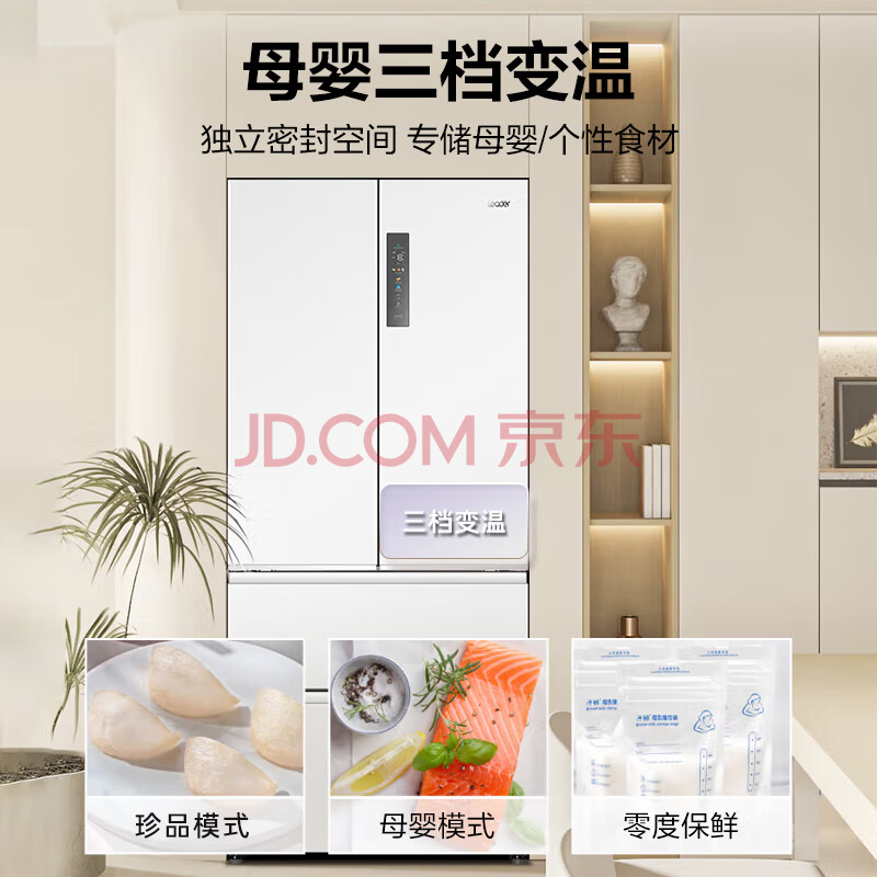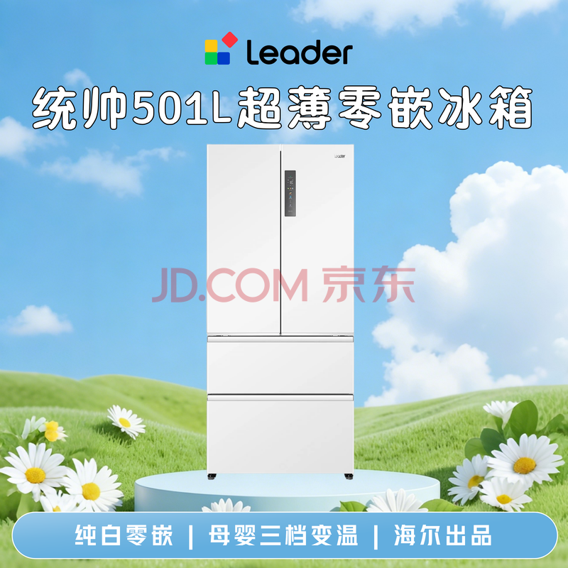 商品相册:统帅(Leader)海尔出品玉脂白系列501L法式多门家用母婴冰箱零嵌一级能效BCD-501WGLFD4DW9U1售完即止只退不换第