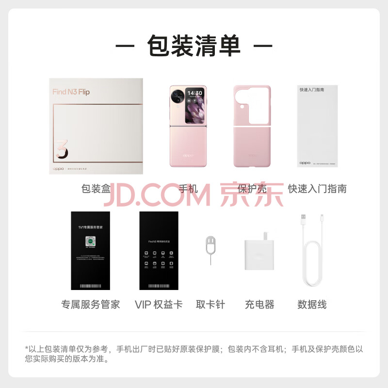 商品相册:OPPO Find N3 Flip 12GB+512GB 薄雾玫瑰 超光影三摄 专业哈苏人像 120Hz屏 5G 拍照 AI 小折叠屏手机第