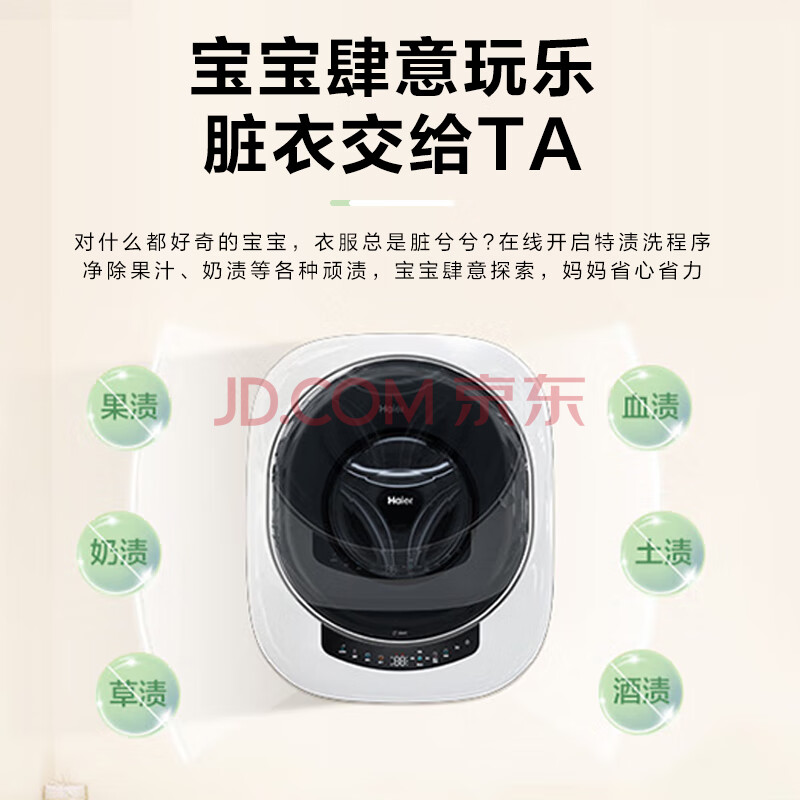 商品相册:海尔(Haier)洗衣机小型全自动 内衣婴儿懒人洗衣机 壁挂洗烘一体家用 3KG除菌螨 家电补贴20% 一级能效云溪715第