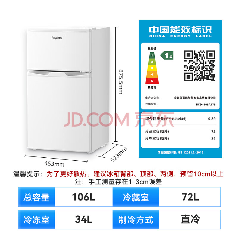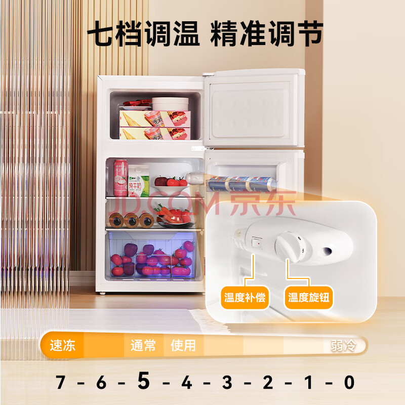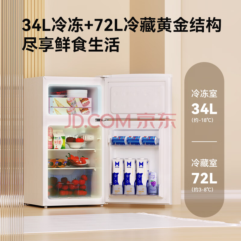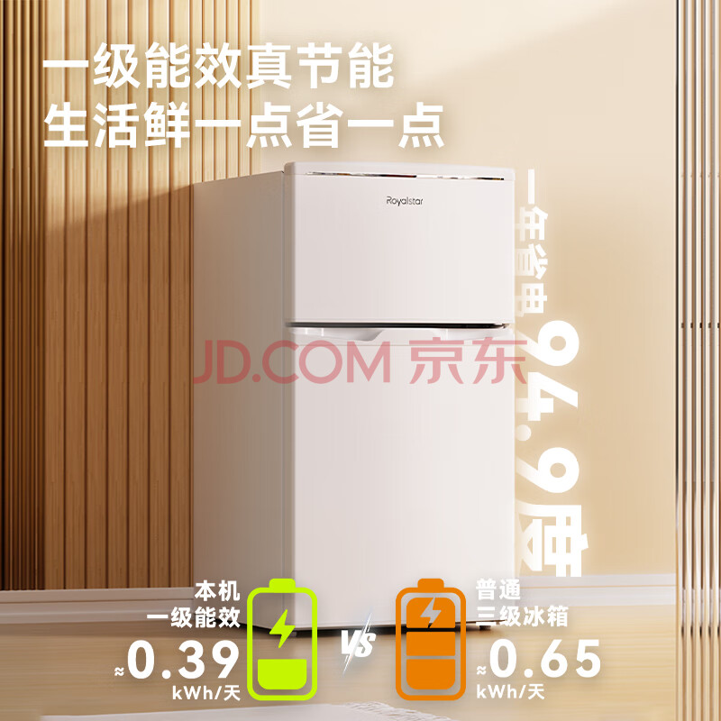 商品相册:荣事达(Royalstar)106升两门双门二门冰箱节能低音小型家用电冰箱迷你宿舍租房小巧不占地两天仅约一度电BCD-106A176第