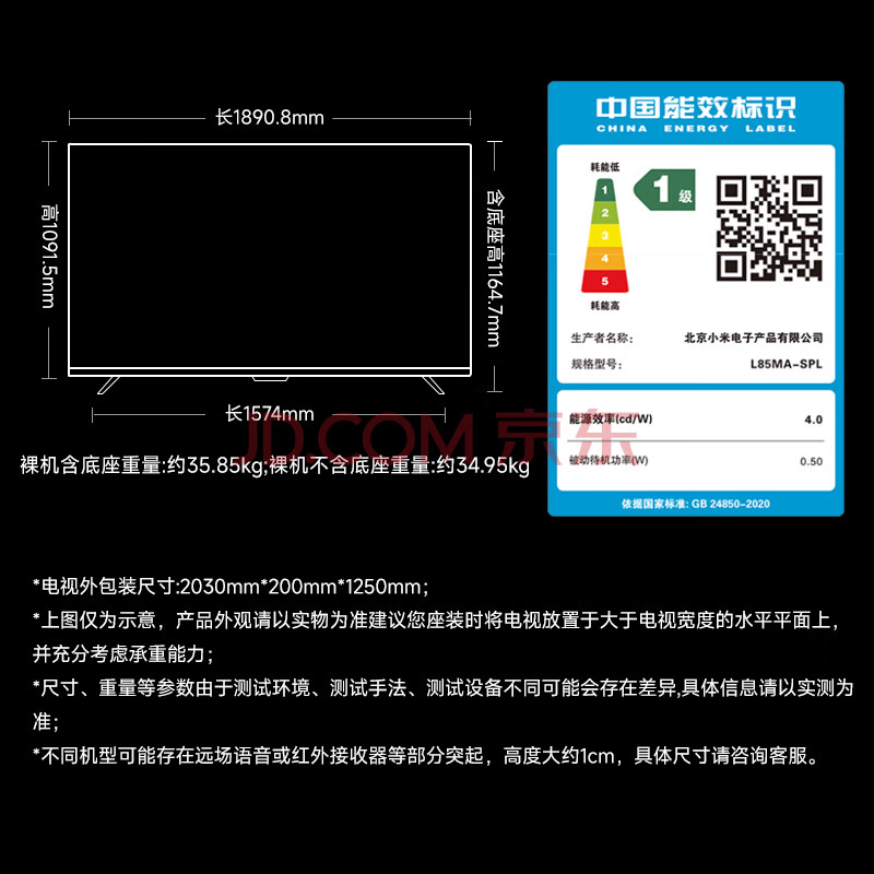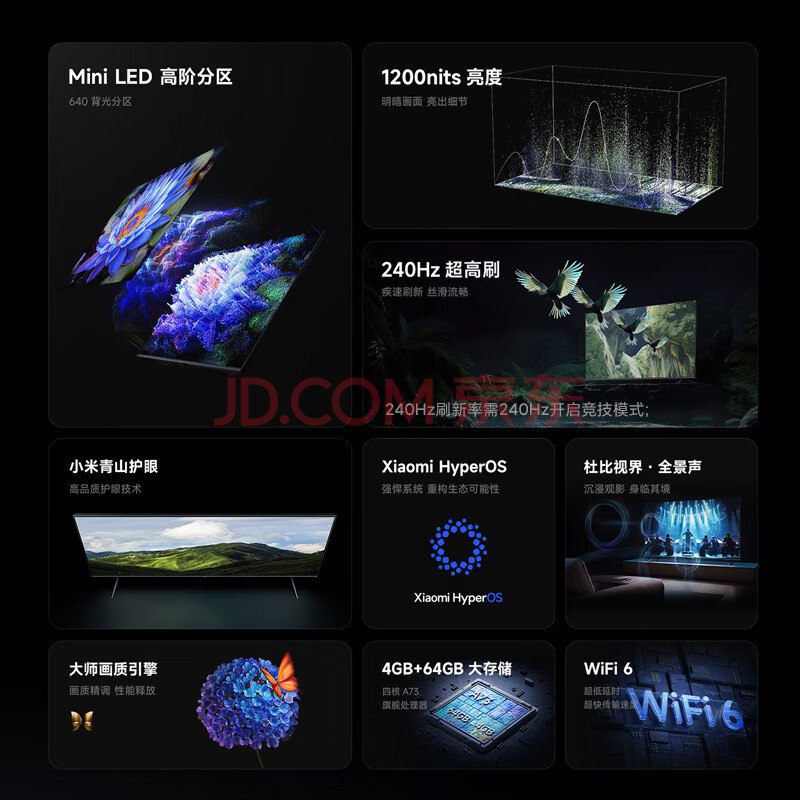 商品相册:小米(MI)电视S85 Mini LED 85英寸 640分区 1200nits 240Hz 澎湃OS 一级能效 L85MA-SPL 第