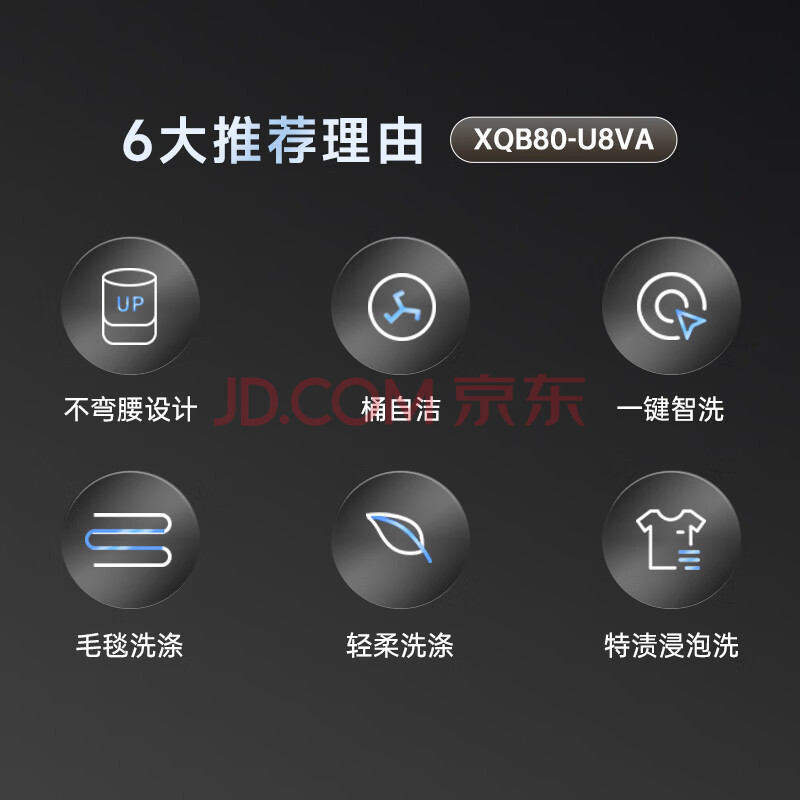 商品相册:松下(Panasonic)不弯腰 波轮洗衣机 8KG 内衣洗衣机智能柔洗大件毛毯洗 全自动家用 XQB80-U8VA第