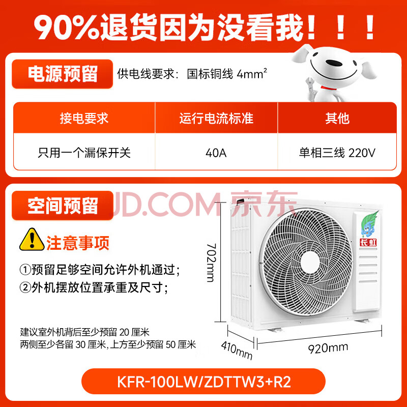 商品相册:长虹空调4匹熊猫懒省电220V家用电铜管立式空调柜机KFR-100LW/ZDTTW3+R2十年包修第