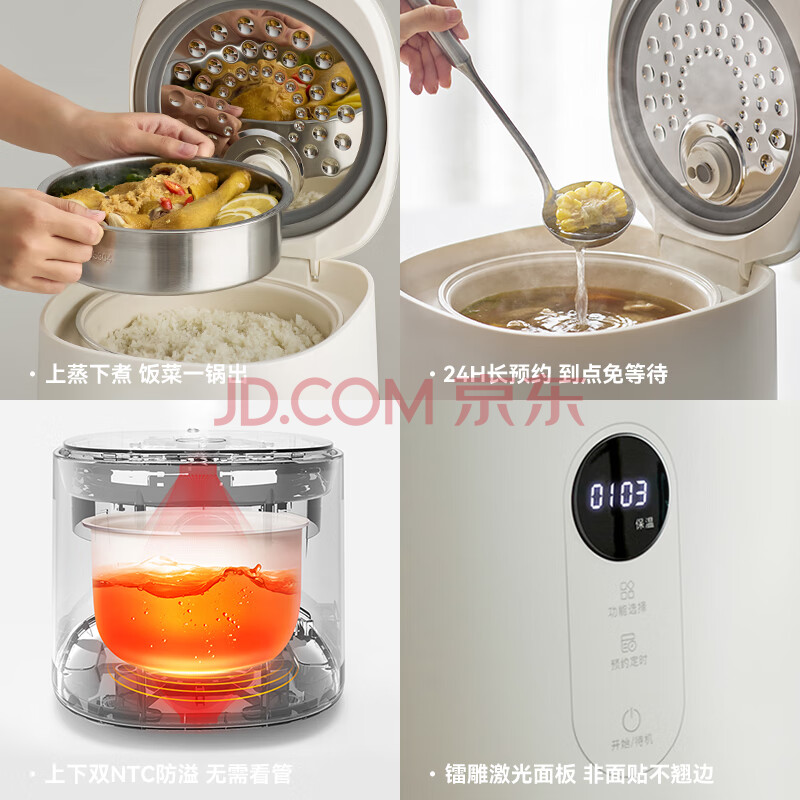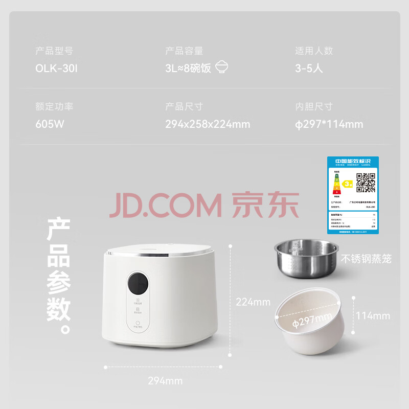 商品相册:olayks立时 电饭煲小型3升2-6人内胆24小时智能预约多功能家用电饭锅带蒸笼第