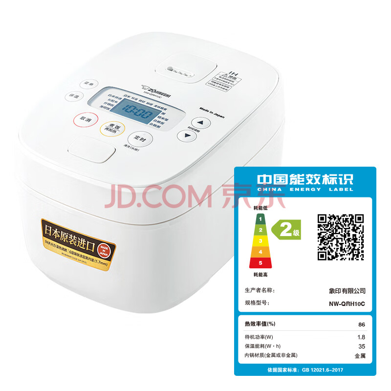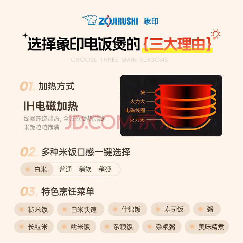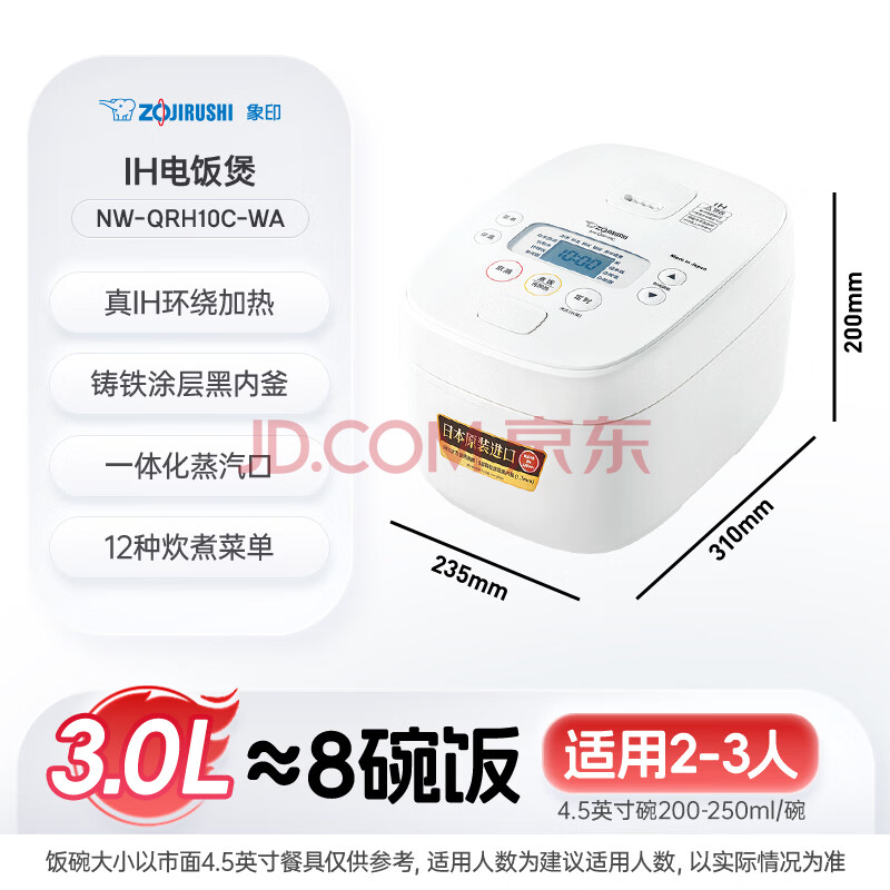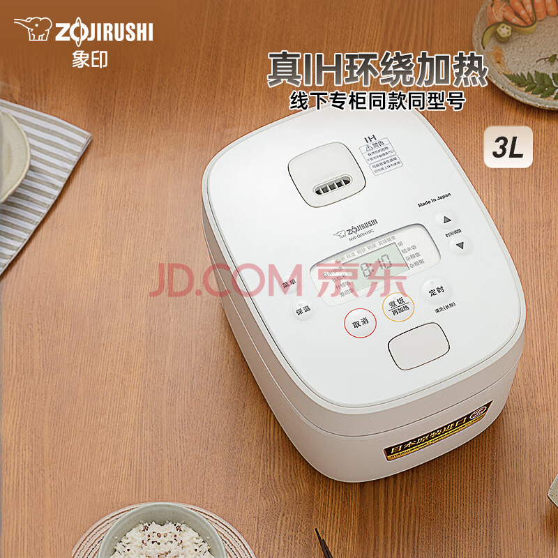 商品相册:象印(ZO JIRUSHI)电饭煲2-3人 日本进口IH家用多功能电饭锅3L 两组预约 杂粮饭糙米饭 NW-QRH10C第1张/共7