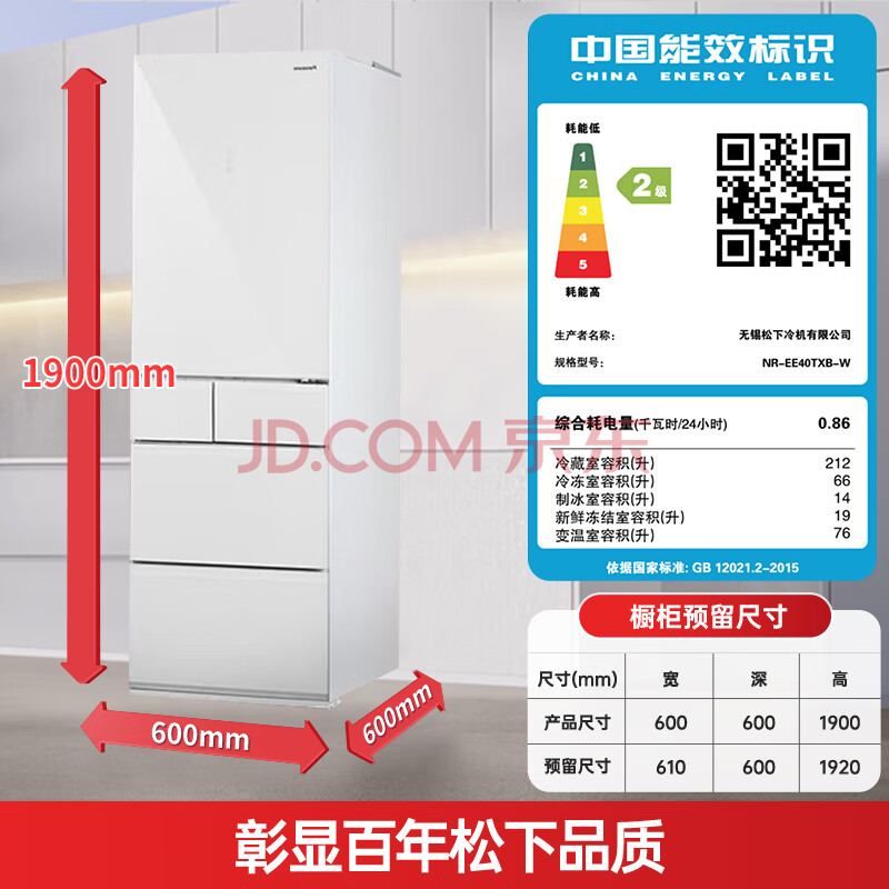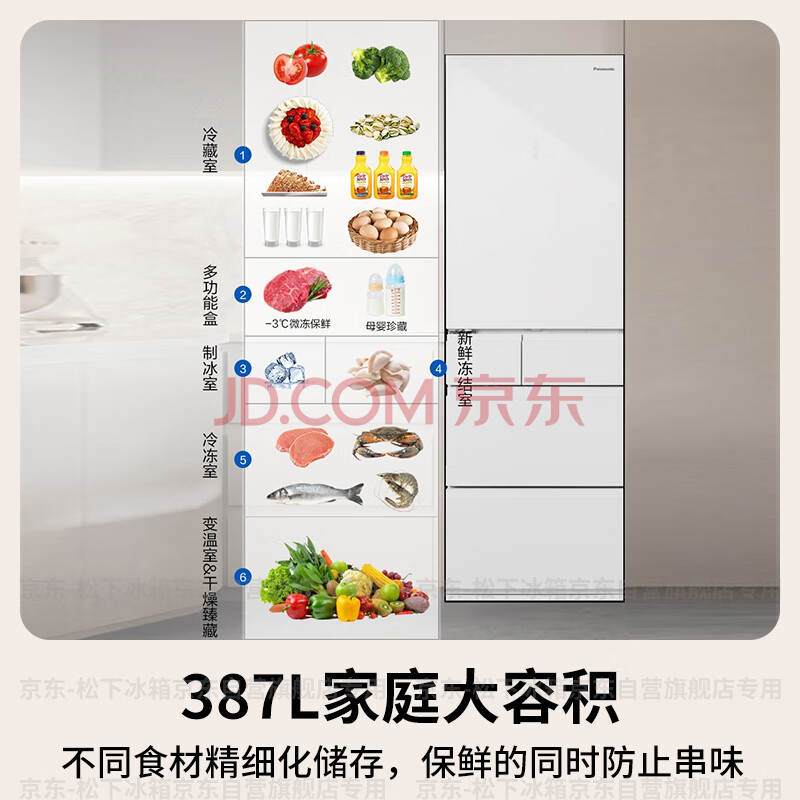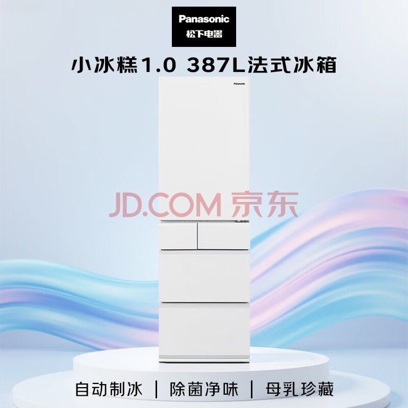 商品相册:松下(Panasonic)小冰糕387L法式多门冰箱玻璃面板家用60cm变频风冷自动制冰小蛮腰NR-EE40TXB-W第