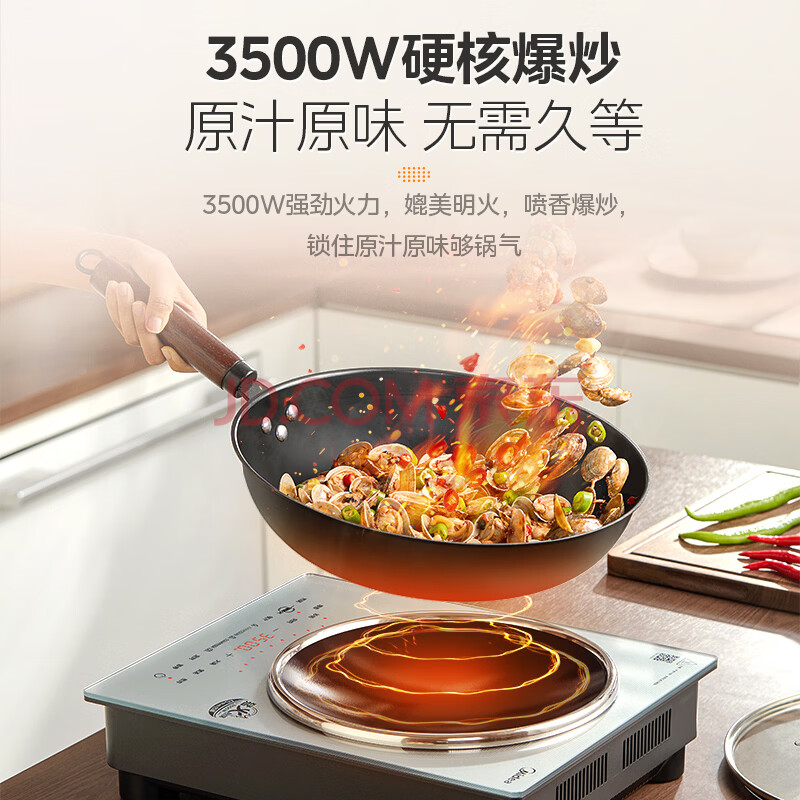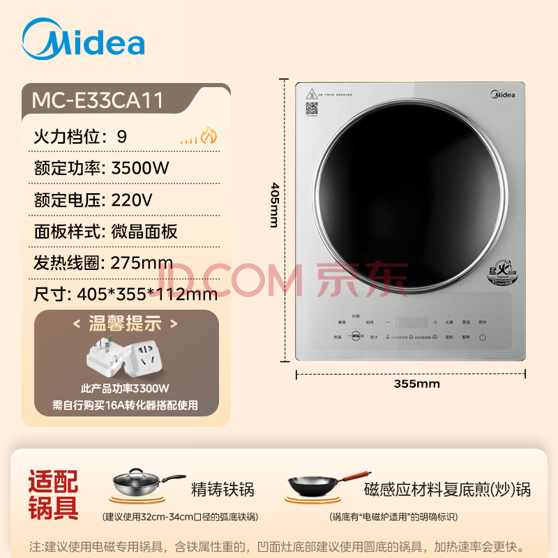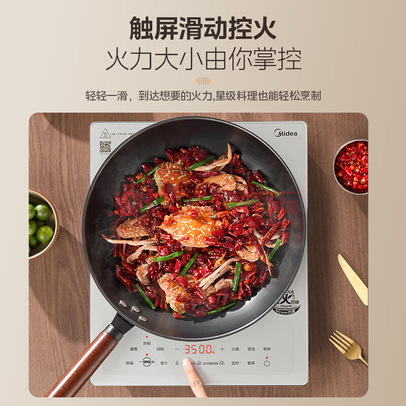 商品相册:美的(Midea)凹面磁炉电陶炉电磁炉3300W大功率多功能电磁灶火锅炉炒菜烧水炉智能预约大面板耐磨易洁E33CA11第