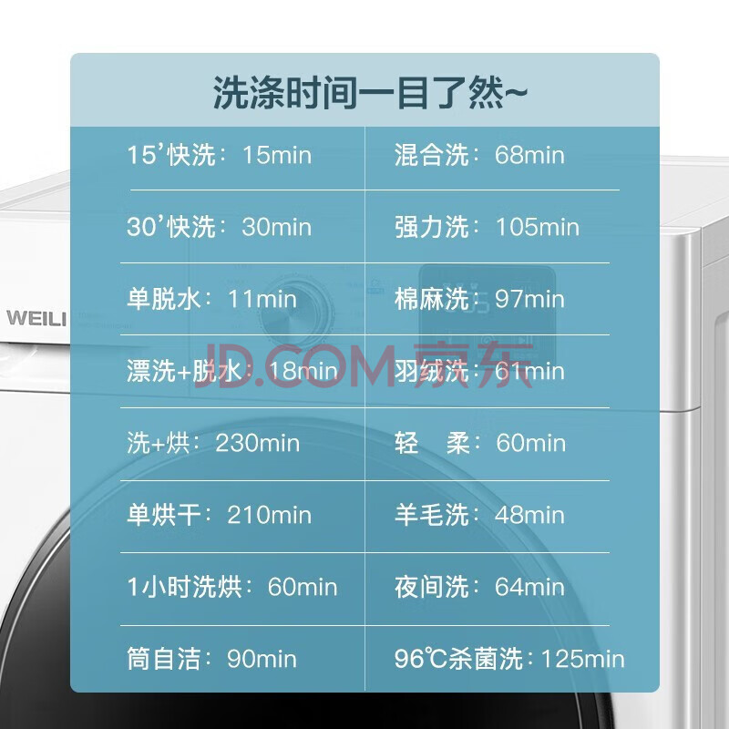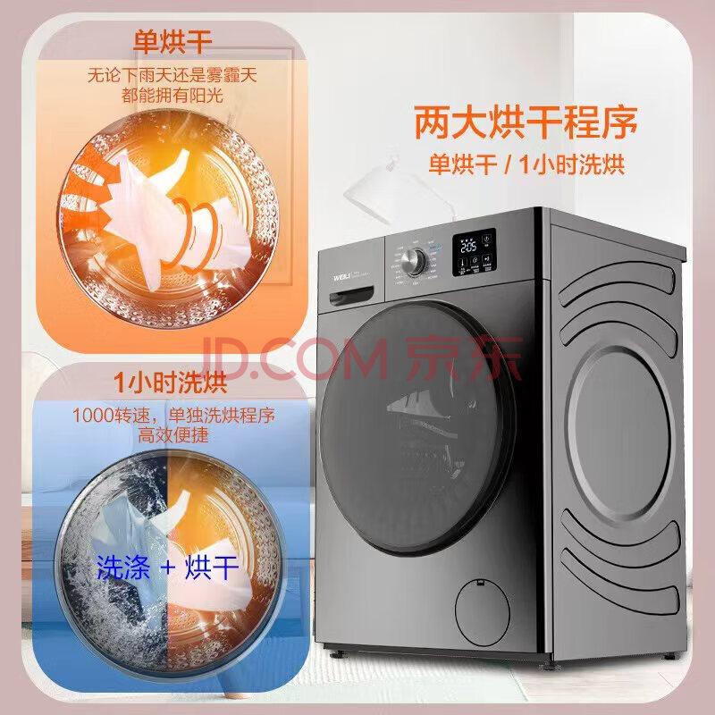 商品相册:威力(WEILI)滚筒洗衣机10KG洗烘一体 超薄变频一级巴氏除菌洗送装一体XQG100-1016DPHX钛金灰第